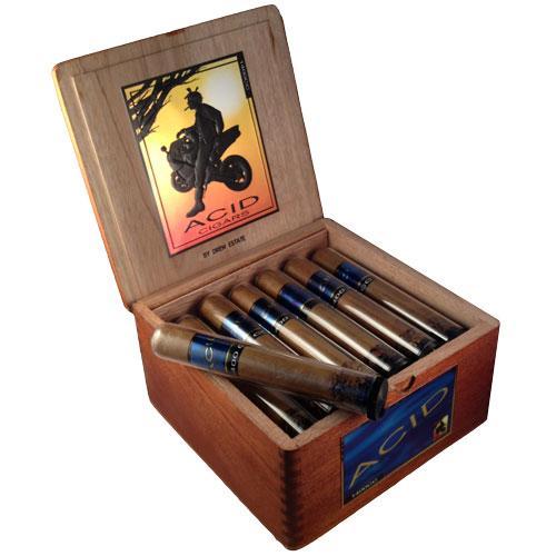 ACID 1400cc cigars are expertly rolled in silky Connecticut wrappers and sealed under glass to preserve all their mild, aromatic floral and herbal essences. One of Acid's most highly-rated cigars. The blue line of Drew Estate ACID cigars carry with them an almost sweet cedar, vanilla infusion...sure to satisfy!!